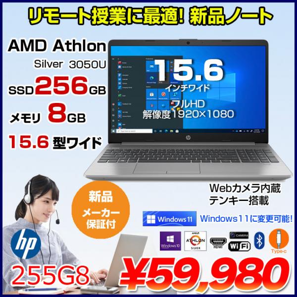 【新品パソコン】HP 255G8 ノート Office Win10 Windows11対応 [AMD Athlon Silver 3050U 8GB 256GB 無線 カメラ テンキー 15.6型] :新品
