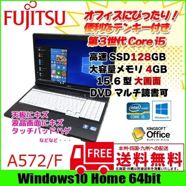 【中古パソコン】富士通 A572 中古 ノートパソコン Office Win10 大画面 テンキー [core i5 3320M 2.6GHz 4G SSD128GB マルチ 15.6型 A4 USB3.0 HDMI無線]:アウトレット