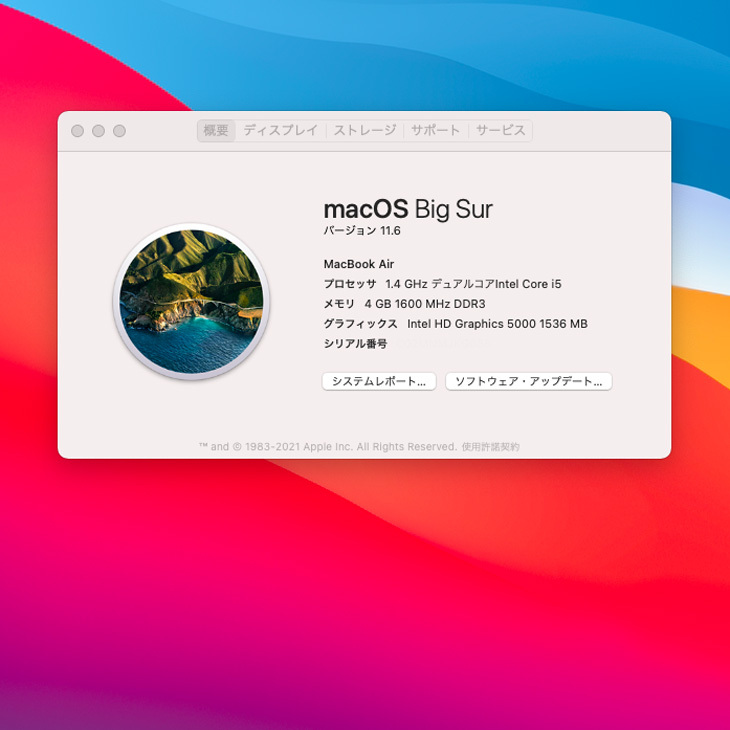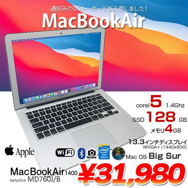 【中古パソコン】Apple MacBook Air 13.3inch MD760J/B A1466 Early2014 USkey [core i5 4260U 1.4GHz メモリ4G SSD128GB 無線 BT カメラ 13.3インチ BigSur11.6] :アウトレット