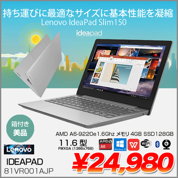 【中古パソコン】Lenovo IdeaPad Slim 150 81VR001AJP 中古 ノート Office Win10 [AMD A6-9220e 4GB SSD128GB 無線 カメラ 11.6型] :美品