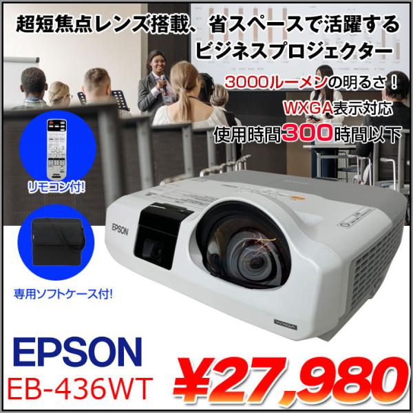 EPSON 液晶プロジェクター EB-436WT 使用300時間以下 3000lm WXGA 3LCD方式 HDMI リモコン 専用バッグ付属:良品