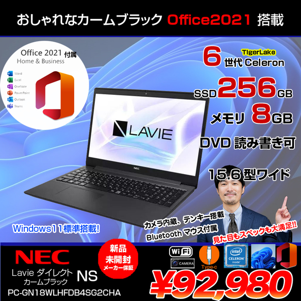 【新品パソコン】NEC LAVIE Direct NS Office2021付 ノート Win11 第6世代 BTマウス [Celeron 6305 8GB 256GB マルチ テンキー カメラ 15.6型 カームブラック] :新品
