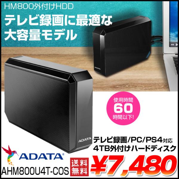 【送料無料】ADATA AHM800U4T-COS 外付けハードディスク 4TB テレビ録画 PC PS4 4K対応 USB3.2 Gen1 ブラック 使用時間60時間以下:良品
