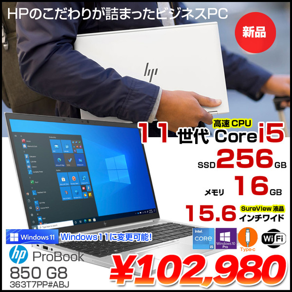 【新品パソコン】HP EliteBook 850 G8 363T7PP#ABJ Win10Pro Windows11対応 第11世代 [Core i5 1145G7 16GB 256GB 無線 カメラ テンキー Type-C 15.6型] :新品