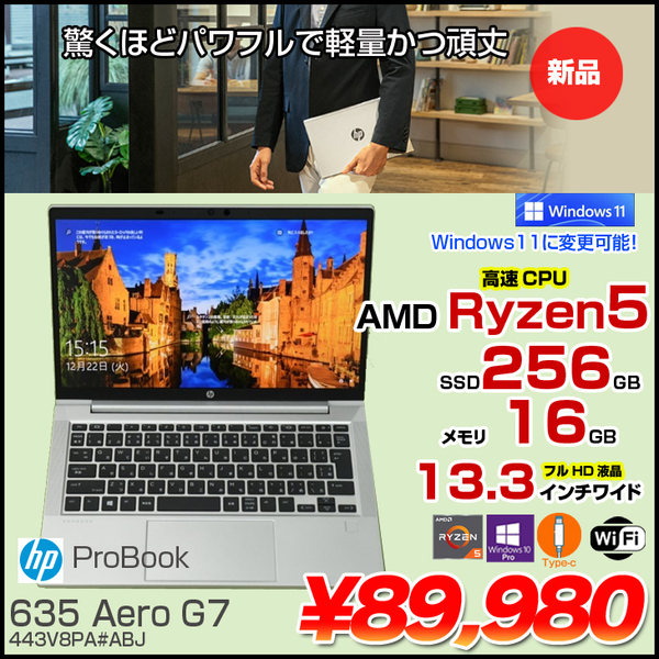 HP ProBook 635 Aero G7443V8PA#ABJ Win10Pro Windows11対応 [Ryzen5 4500U 16GB 256GB 無線 カメラ Type-C フルHD 13.3型] :新品