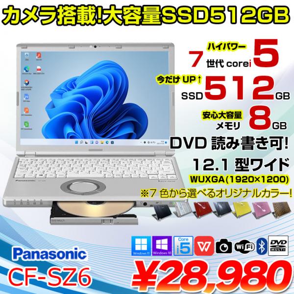 【中古パソコン 今だけSSD倍増中】Panasonic CF-SZ6 中古 レッツノート 選べるカラー Office Win10 or Win11 第7世代[Core i5 7200U メモリ8GB 今だけSSD512GB マルチ カメラ 12.1型 ] :アウトレット