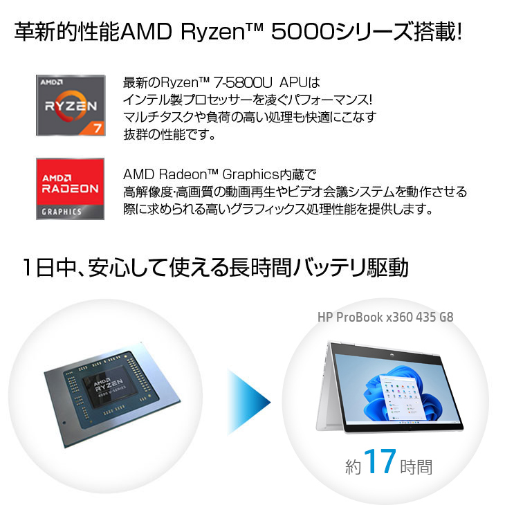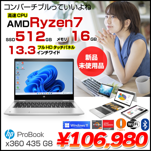 【新品パソコン】HP ProBook x360 435G8 2in1 コンバーチブルノート Win10 Win11Home [AMD Ryzen7 5800U 16GB 512GB 無線 カメラ 13.3型] :新品