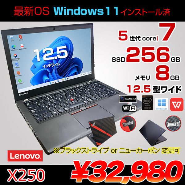 【中古パソコン】Lenovo X250 中古 ノート 選べるカラー Office Win11 第5世代 [Core i7 5600U 8GB SSD256GB 無線 カメラ 12.5型 ] :アウトレット
