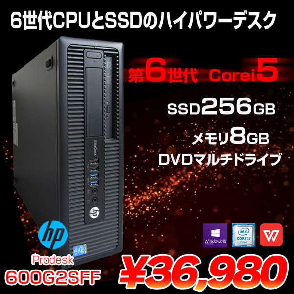 【中古パソコン】HP ProDesk600G2 SFF 中古 デスクトップパソコン Win10 Office 第6世代[Corei5 メモリ8GB SSD256GD マルチ]