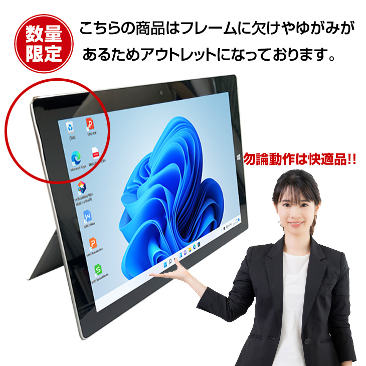 【中古パソコン】Microsoft Surface3 中古タブレット Office 選べる Win11 or Win10 [ATOM Z8700 4GB 128GB 無線 カメラ 10.8]:アウトレット