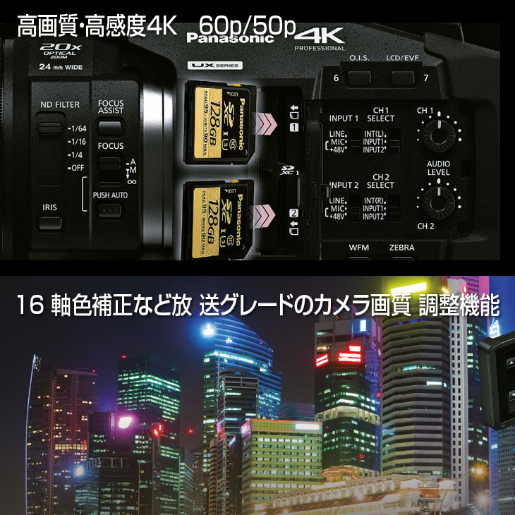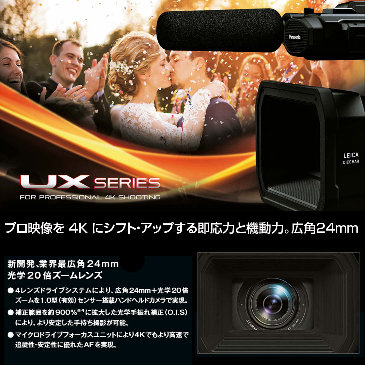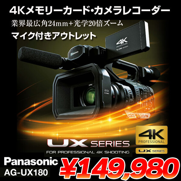 Panasonic AG-UX180 4Kメモリーカードカメラレコーダー 広角24mm 光学20倍ズーム 1.0型好感度MOSセンサー搭載 業務用4Kカムコーダー マイク:アウトレット