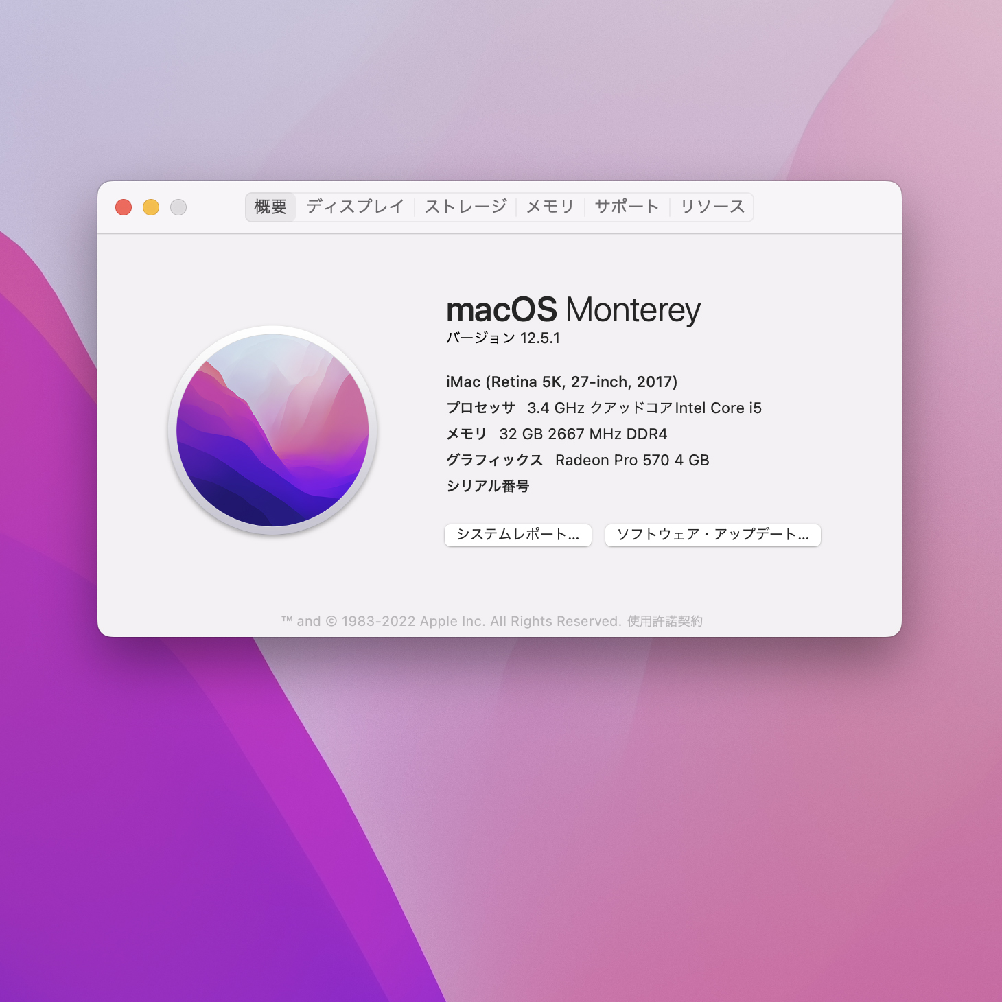 【中古パソコン】Apple iMac 27inch MNE92J/A A1419 5K Mid 2017 一体型 選べるOS Monterey or Bigsur [Core i5 7500 32G Fusion 2.12TB 無線 BT カメラ 27インチ]:良品