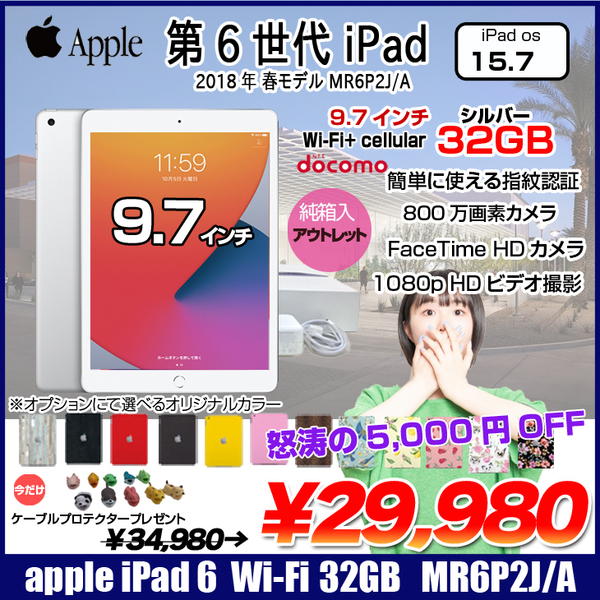 【中古iPad】Apple iPad 第6世代 MR6P2J/A Docomo Wi-Fi+ Cellular 2018 32GB A1954 選べるカラー[ A10 32GB(SSD) 9.7インチ iPadOS 15.7 シルバー ] :アウトレット