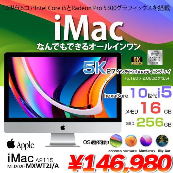 【中古パソコン】Apple iMac 27inch MXWT2J/A A2115 5K 2020 一体型 選べるOS [Core i5 10500 3.1GHz 16G SSD256GB 無線 BT カメラ 27インチ ]:良品