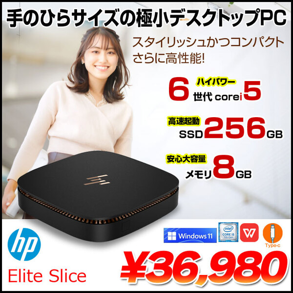 【中古パソコン】HP EliteSlice 超小型 中古 デスクトップパソコン Win11 Office 6世代 [core i5 6500T 8GB SSD256GB Type-c HDMI]:良品
