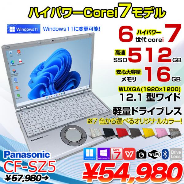 【中古パソコン】Panasonic CF-SZ5 中古 レッツノート Office Win11 orWin10 第6世代 [Core i7 6600U メモリ16GB SSD512GB 無線 カメラ 12.1型] :アウトレット
