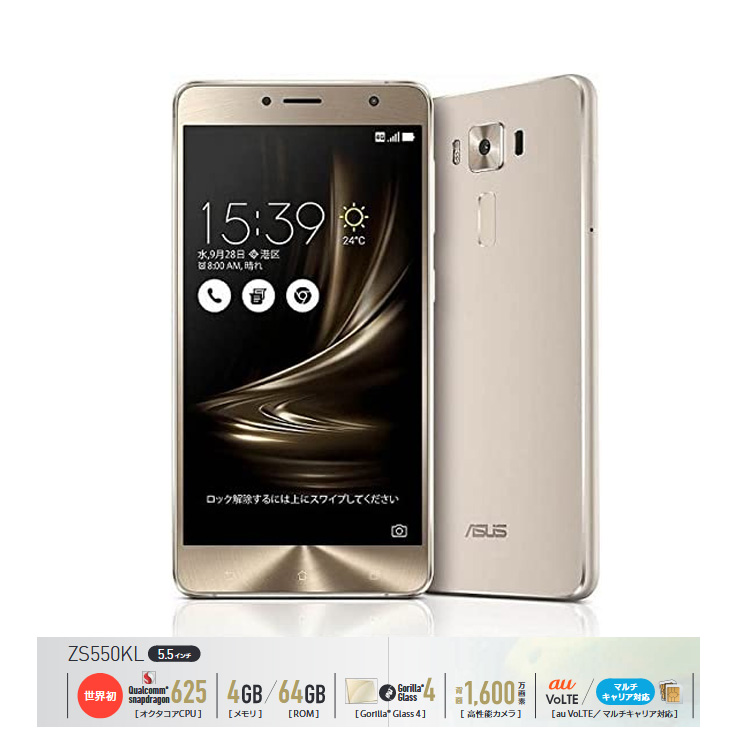 ASUS ZenFone 3 Deluxe ZS550KL スマートフォン ハイレゾ [Snapdragon 625 Android6.01 メモリ4GB SSD64GB 5.5型 SIMフリー デュアルSIM シルバー]:未使用