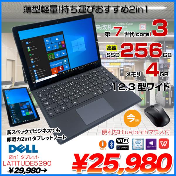 【中古パソコン 今だけ特価+マウス】DELL LATITUDE 5290 中古 2in1 タブレットノート Office Win10 第7世代 [Corei3 7130U 4GB SSD256GB 無線 カメラ 12.3型 ] :良品