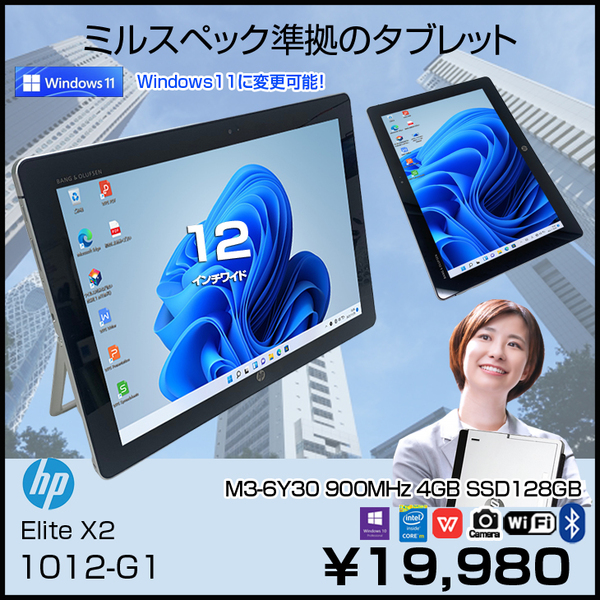 【中古パソコン】HP Elite x2 1012 G1 中古 タブレット 選べる Win11 or Win10 Office [Core M3 6Y30 メモリ4GB SSD128GB 無線 カメラ GPS 12型]:アウトレット