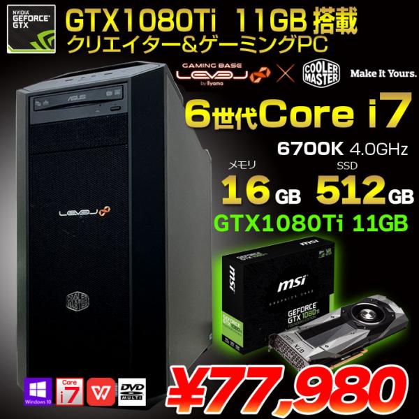 iiyama LEVEL∞ Cooler Master ゲーミングパソコン GTX1080Ti 11GB 搭載 Win10 Office 第6世代[Core i7 6700K 4.0GHz メモリ16GB SSD512GB マルチ] :良品