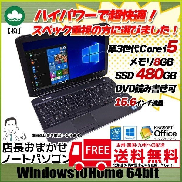 店長おまかせノートパソコン【中古パソコン 松】Win10 Home 64bit テンキー Office付 [高速Core i5 メモリ 8G SSD480GB マルチ 15.6型 無線] :良品