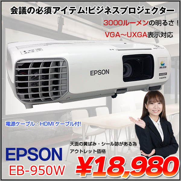 EPSON 液晶プロジェクター EB-950W 3000lm WXGA 3LCD方式 学校 ビジネスにおすすめ:アウトレット