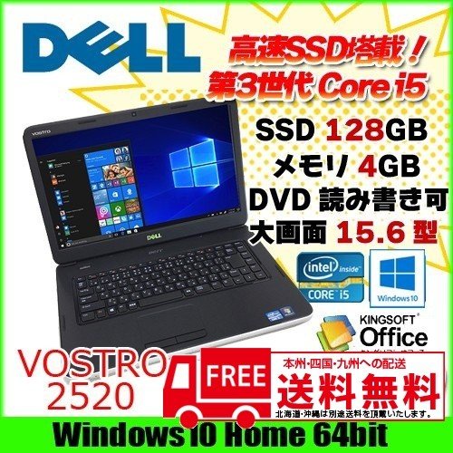 【中古パソコン】DELL V2520 中古 ノートパソコン Office Win10 Home 64bit 高速SSD塔載 第3世代 [core i5 3220M 2.6GHz 4G SSD128GB マルチ 15.6型 A4 カメラ付 ] :良品