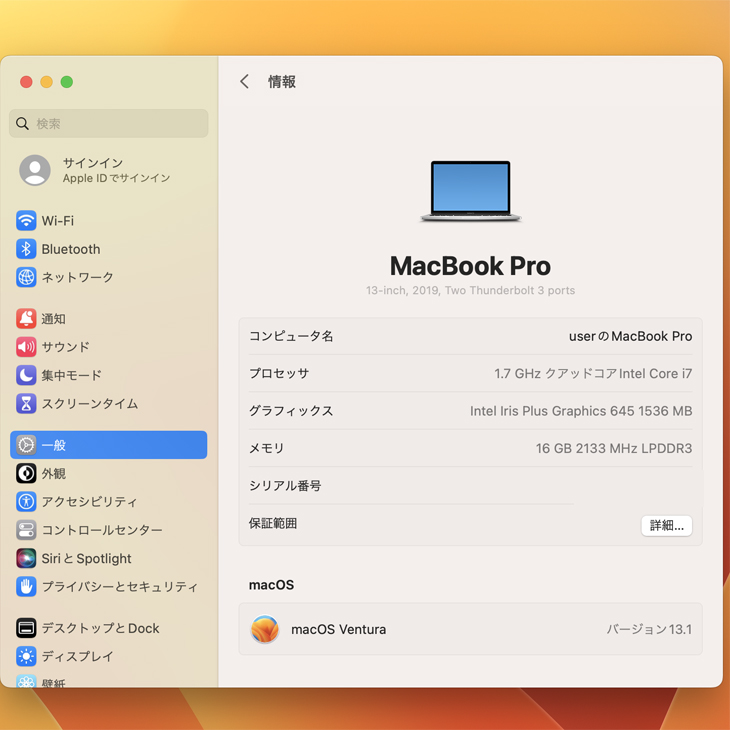 【中古パソコン】Apple MacBook Pro 13.3inch MUHR2J/A A2159 2019 選べるOS TouchBar TouchID [core i7 8557U 1.7GHz 16GB SSD256GB 無線 BT カメラ 13.3 ] :良品