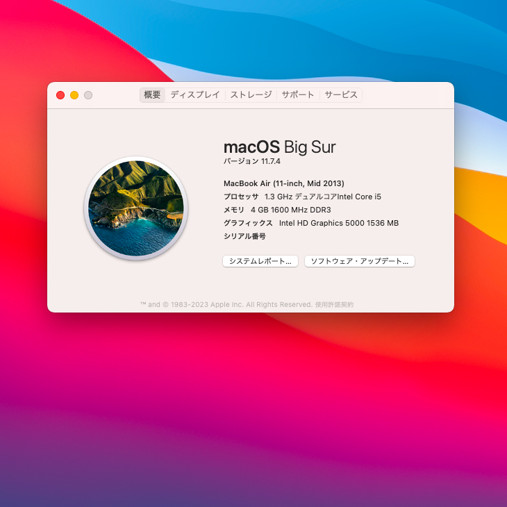 【中古パソコン】Apple MacBook Air 11.6inch MD712J/A A1465 Mid 2013 [core i5 4250U 1.3GHz 4GB SSD256GB 無線 BT カメラ 11.6インチ BigSur 11.7] :アウトレット