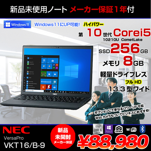 【新品未開封 】NEC VersaPro VKT16/B-9 ノート Win10 第10世代 [Corei5 10210U 1.6GHz メモリ8GB SSD256GB 無線 カメラ 13.3型] :未使用品