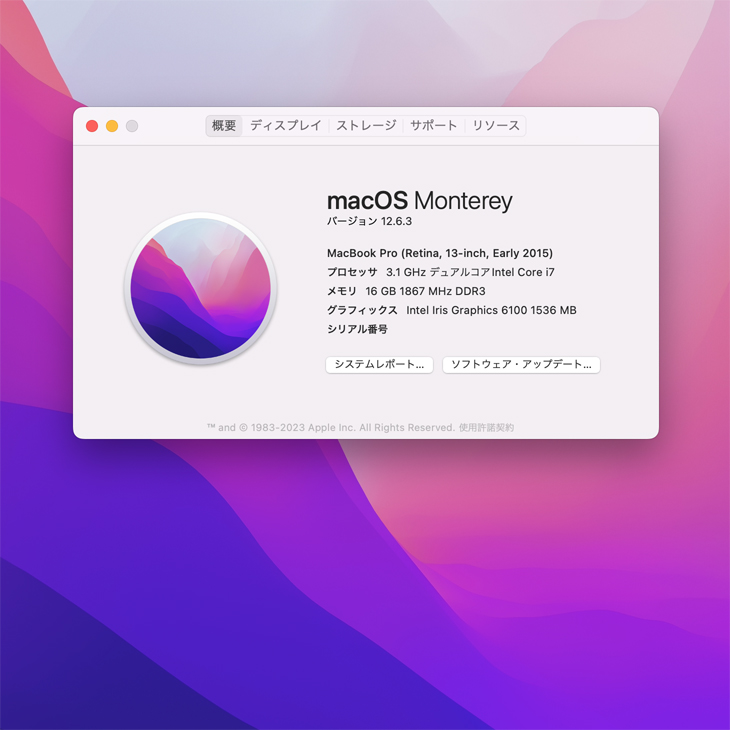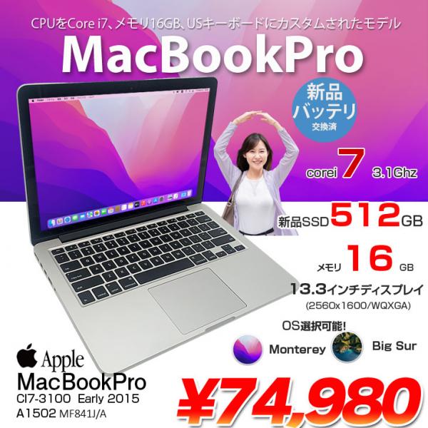 【 新品バッテリー】Apple MacBook Pro 13.3inch MF841J/A A1502 Early 2015 USキー 選べるOS Monterey or Bigsur [Core i7 5557U 16G 512GB 無線 BT ] :良品