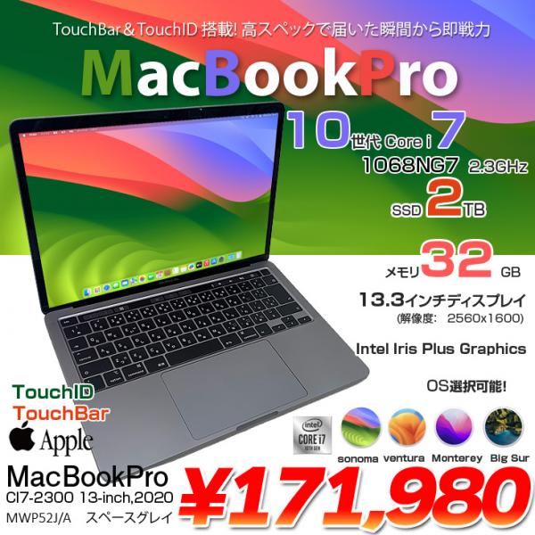 【中古パソコン】Apple MacBook Pro 13.3inch MWP52J/A A2251 2020 選べるOS TouchBar TouchID [core i7 1068NG7 2.3GHz 32GB SSD2TB 無線 BT カメラ 13.3 ] :良品