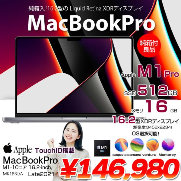 【中古パソコン】Apple MacBook Pro 16inch MK183J/A A2485 Late 2021 TouchID 選べるOS [Apple M1 Pro 10コア 16G 512GB 無線 BT カメラ 16.2 Space Gray 純箱] :良品