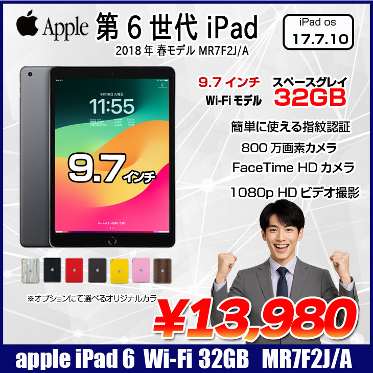 Apple iPad6 第6世代 MR7F2J/A Wi-Fi 2018 32GB A1893 選べるオリジナルカラー [ A10 32GB 9.7インチ iPadOS 17 スペースグレイ] :アウトレット