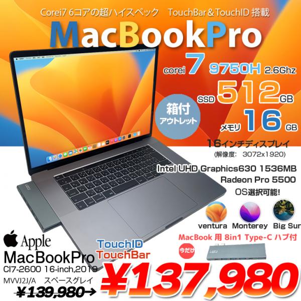 【中古パソコン 今だけ!8in1TypeCハブプレゼント】Apple MacBook Pro 16inch MVVJ2J/A A2141 2019 選べるOS TouchBar TouchID [core i7 9750H 16G 512G 無線 BT カメラ 16インチ 純箱 Space Gray]:アウトレット