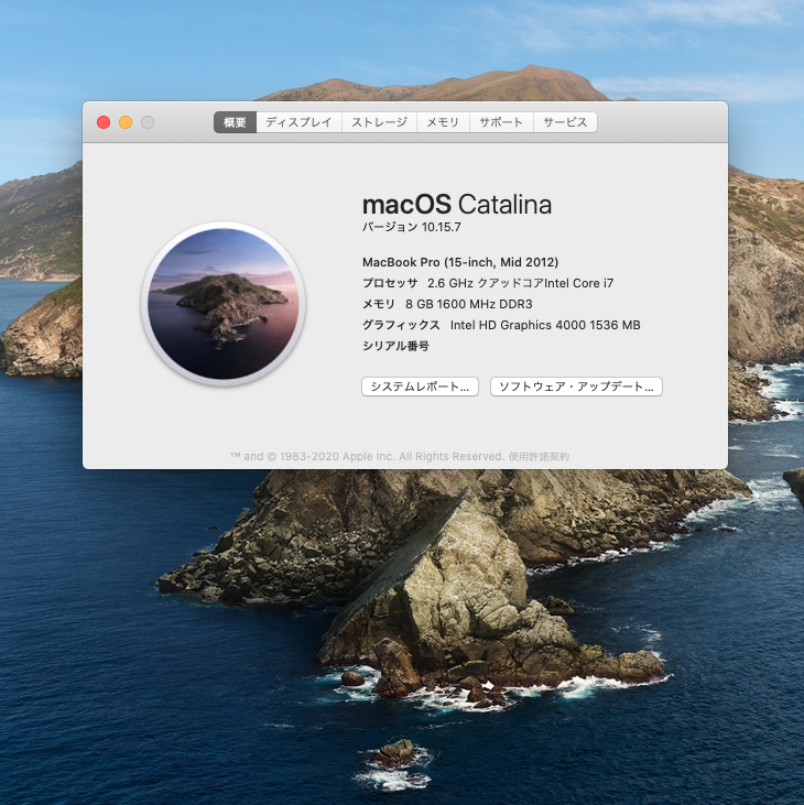 【中古パソコン】Apple MacBook Pro 15.4inch MD104J/A A1286 Mid 2012 [core i7 3720QM 16G 512GB マルチ 無線 BT カメラ 15.4 Catalina 10.15.7]:良品