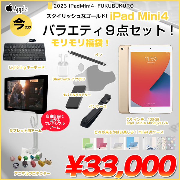 【中古iPad iPadMini4 便利に使える付属品付もりもり9点福袋 】Apple iPad mini4 MK9Q2LL/A Wi-Fiモデル 128GB 選べるカラー OS 15.7.5