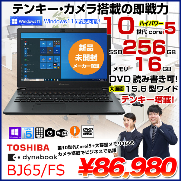 【新品未開封 】東芝 dynabook BJ65/FS ノート Win10 第10世代 [Corei5 10210U 16GB SSD256GB マルチ 無線 テンキー カメラ 15.6型 ]:新品