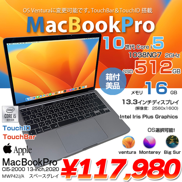 【中古パソコン】Apple MacBook Pro 13.3inch MWP42J/A A2251 2020 選べるOS TouchBar TouchID [core i5 1038NG7 16G 512G BT カメラ 13.3 Space Gray 純箱 ]:美品