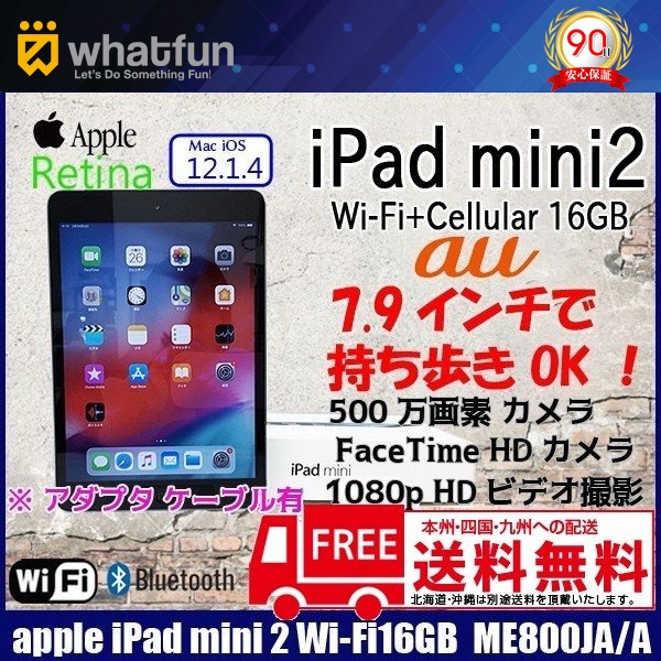 【中古iPad】Apple iPad mini 2 ME800JA/A au Wi-Fi Cellularモデル 16GB [ A7 16GB(SSD) 7.9インチ OS 12.1.4 スペースグレイ] :美品 中古 アイパッドミニ