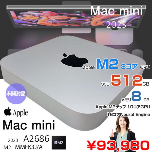 【中古パソコン 未開封品】Apple Mac mini MMFK3J/A A2686 M2 2023 小型デスク macOS [Apple M2 8コア 8GB SSD512GB 無線 BT シルバー ]:未開封