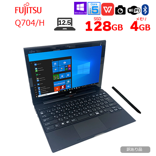 【中古パソコン】富士通 ARROWS Tab Q704/H 中古 2in1 タブレット Office Win10 ペン+ドックキーボード[Core i5 4300U 4G 128G カメラ 12.5] :訳あり品(バッテリ×)