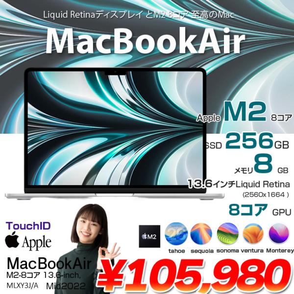 【中古パソコン】Apple MacBook Air 13.6inch MLXY3J/A A2681 2022 TouchID [Apple M2 8コア 8G SSD256GB 無線 BT カメラ 13.6 Silver 純箱] :美品