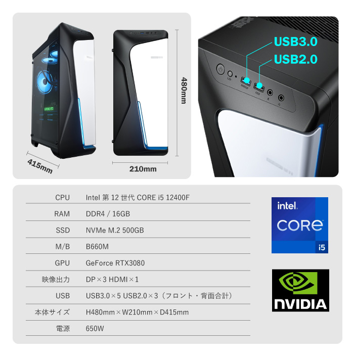 ゲーミングPC COMBAT ZONE S6 GeForce RTX3080 第12世代 Corei5 Win10 SSD500GB メモリ16GB eスポーツ PASOUL 煌 1年保証