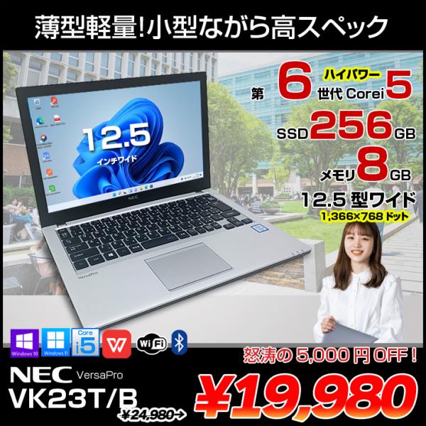 【中古パソコン】NEC VK23T/B 中古ノート 選べるWin11 or win10 Office 第6世代 [Corei5 6200U 2.3GHz 8GB SSD256GB 12.5型 BT 無線]:良品