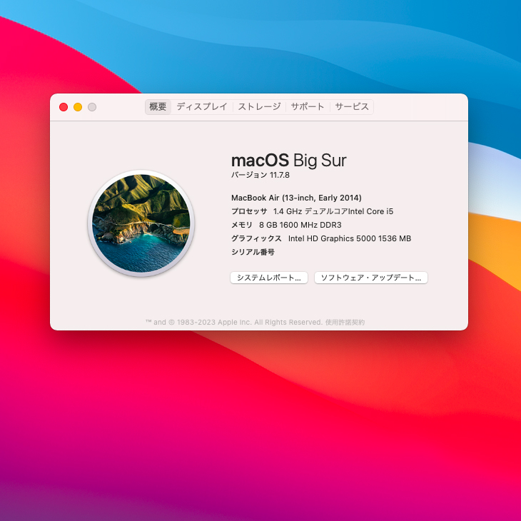 【中古パソコン】Apple MacBook Air 13.3inch MD760J/B A1466 Early 2014 [core i5 4260U 1.4GHz 8G SSD512GB 無線 BT カメラ 13.3インチ BigSur 11] :アウトレット