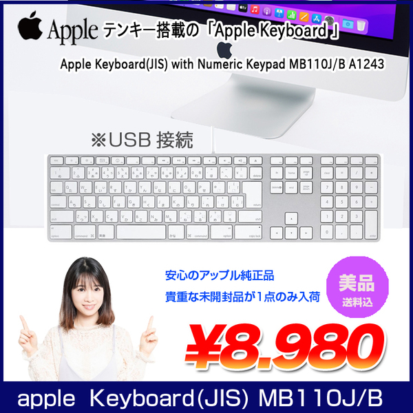 Apple アップル 純正 Apple Keyboard with Numeric Keypad アップルキーボード MB110J/B 日本語配列キーボード A1243 USB接続 送料込み 中古 美品