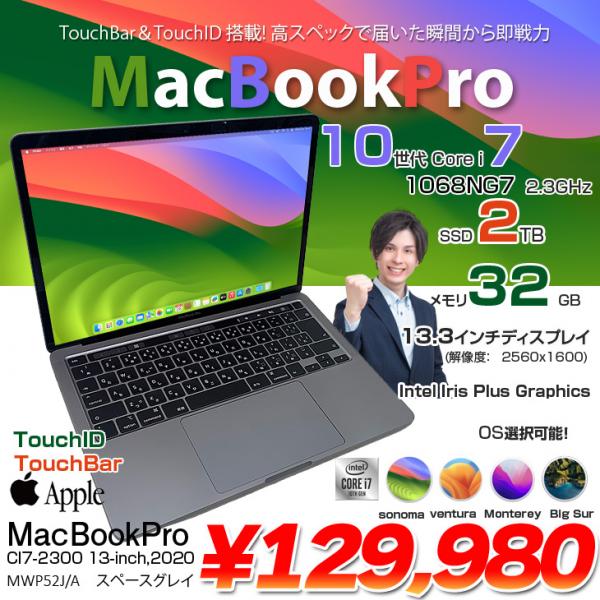 【中古パソコン】Apple MacBook Pro 13.3inch MWP52J/A A2251 2020 選べるOS TouchBar TouchID [core i7 1068NG7 2.3GHz 32GB SSD2TB 無線 BT カメラ 13.3 Space Gray] :アウトレット