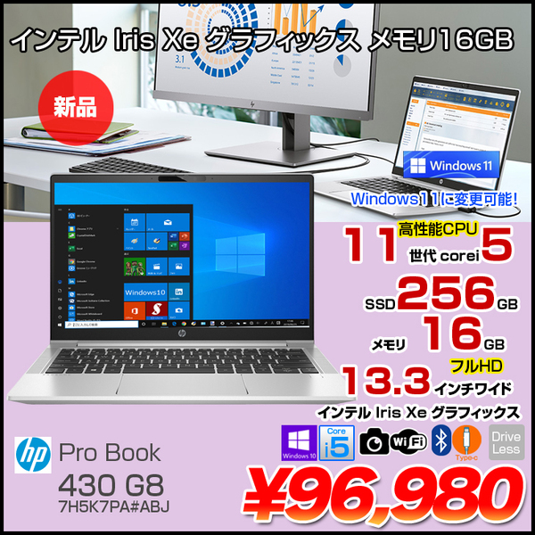 【新品パソコン】HP ProBook 430 G8 7H5K7PA#ABJ Win10Pro Windows11対応 [Corei5 1135G7 16GB 256GB 無線 カメラ Type-C 13.3型 フルHD ] :新品