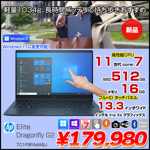 【新品パソコン】HP Elite Dragonfly G2 7C1F9PA#ABJ Win10Pro Windows11対応 [Core i7 1165G7 16GB 512GB 無線 カメラ タッチパネル Type-C フルHD 13.3型] :新品